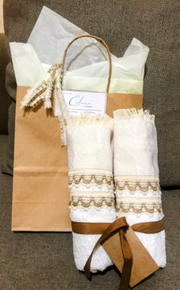 Dos toallas artesanales con packaging para regalar